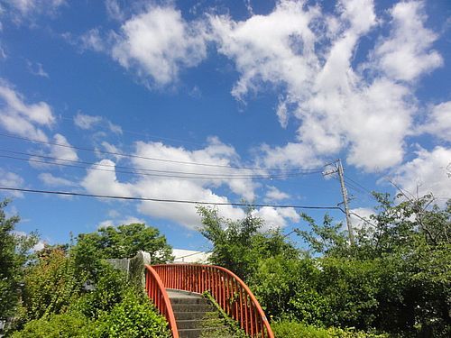 東の公園で遊んだ後、陸橋を渡って