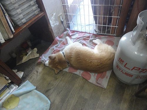 夜も、ここで寝ちゃってます。