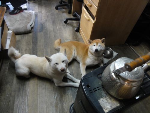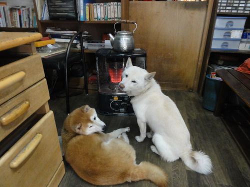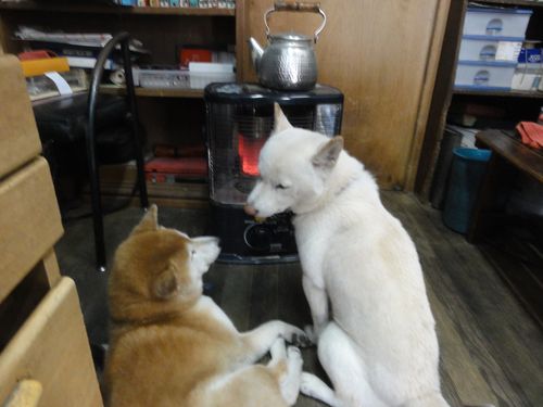 今日もストーブの前を陣取ったワンコ達。