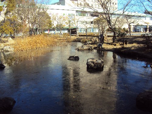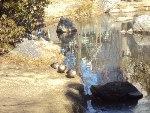 池のほとりに座り込んで、しばらく日向ぼっこをする、