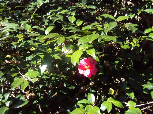 こんな寒い日は、サザンカだって、日向ぼっこです。
