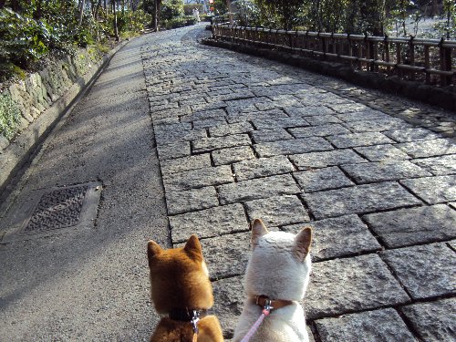 このワンコたちが、店のウインドウー辺をウロウロしているのを