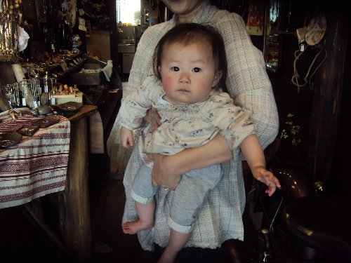 たまたま通りかかったお客さんの赤ちゃんも、すぐにニコニコさせて