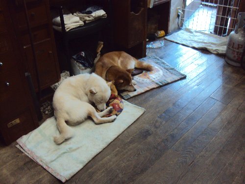 こんな日は、2匹とも、まーるくなって、寄り添うように寝ていました。