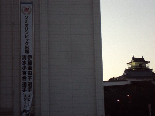 フッと見ると、市役所の壁に、ソチオリンピックの地元選手の