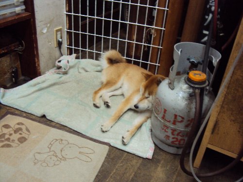 2匹とも、冷っこいガスボンベに、頭くっつけて寝ています。