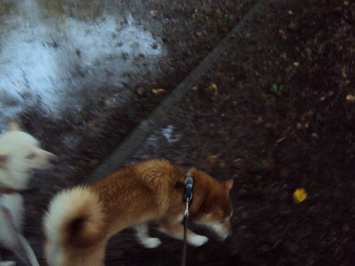 雨の日の散歩は、ちょっとした修行です。