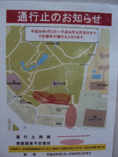 今日から2ヶ月間、浜松城の南側のエリアが、立ち入り禁止です。