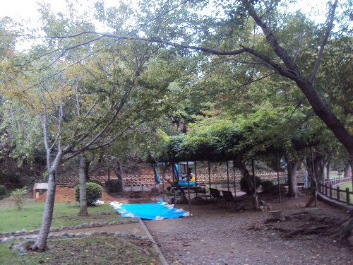 いつも、よく休憩する藤棚のそばも、掘り起こしています。