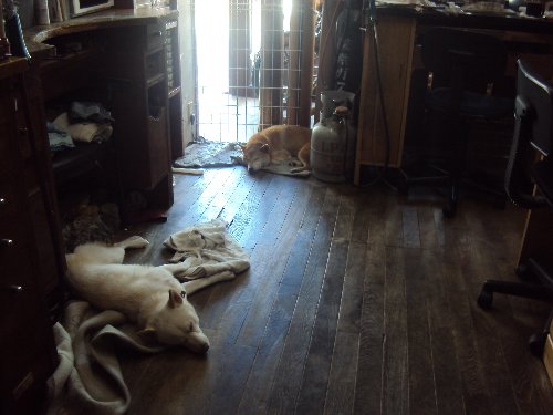 ワンコたちも、私が帰った時から、敷物とかがほとんど動いていないので、