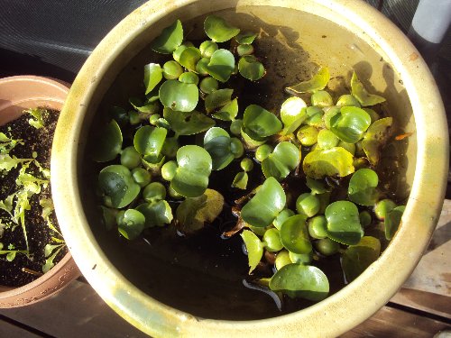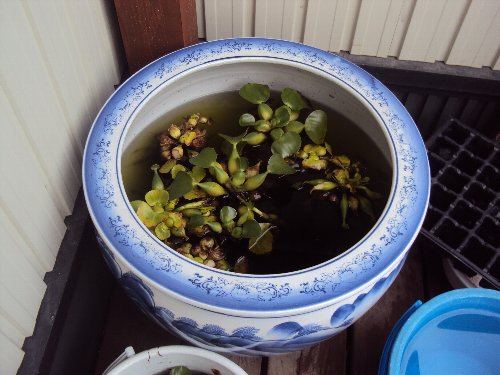 こちらの小さめの鉢には、子メダカが6匹ほどいます。