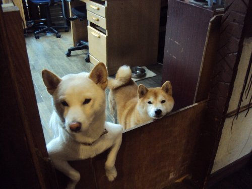 奥に用事で行って、帰ってきたら、2匹がお出迎えです。