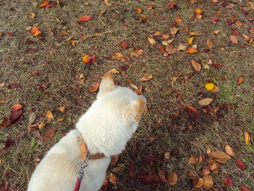 シロの耳の色って、落ち葉の色に、ちょっと似てるね。