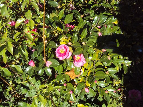 開き始めたサザンカも、朝日に照らされて気持ちよさそう。