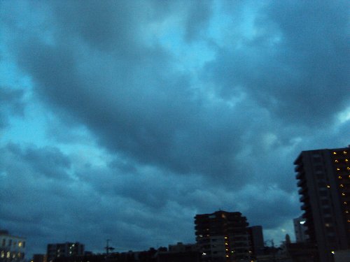 今日の夕暮れ時は、一面に雲が垂れこめていました。