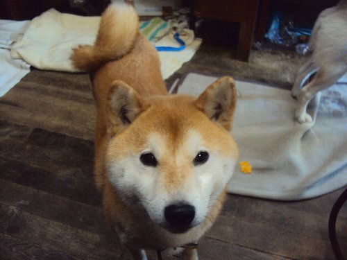 夕方の散歩から帰ってきて、工房に戻ると、チャロ君、