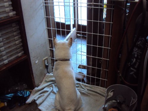 夏の間は、外に面したこの場所は、チャロ君の指定席ですが、
