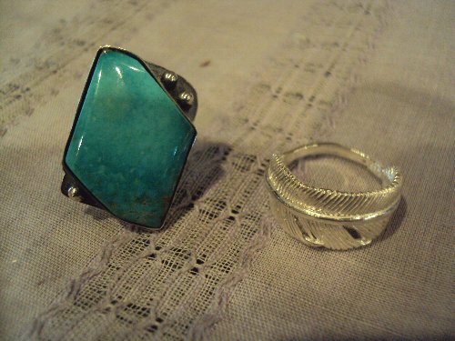 この指輪に合わせて、中指用にフェザーのリングも作りました。