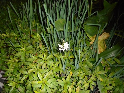 植え込みの中に、一輪の水仙を見つけました。