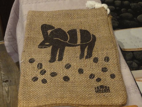 きっと、コーヒー豆が入っていた、麻袋で作ったんだね。