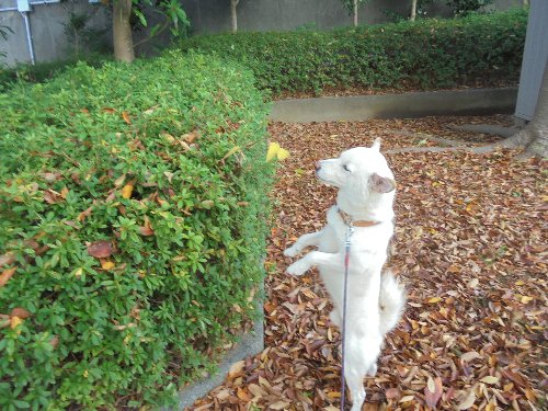 目の前の、黄色い葉っぱ、食べたいみたいです。