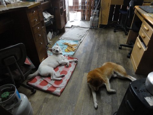 時々、工房を覗くと、ワンコたちがのんびりしていて、
