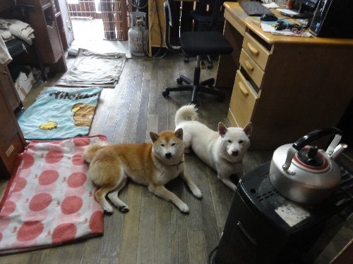 ワンコたちは、相変わらず、ストーブの前でまったり、、、