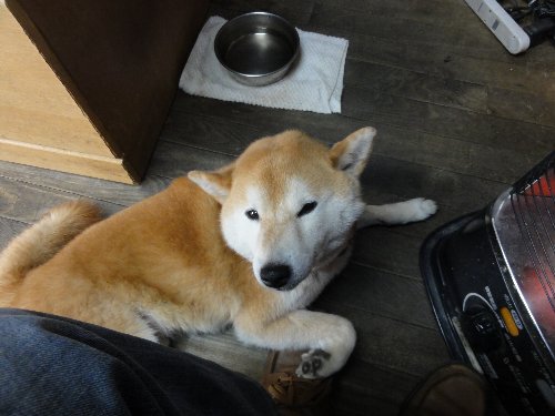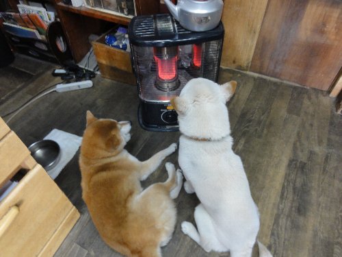ワンコたちが帰ってきて、しばらくして、ストーブをつけました。