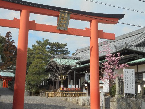 梅を見たいなと、せめて、五社神社の鳥居の近く経由の