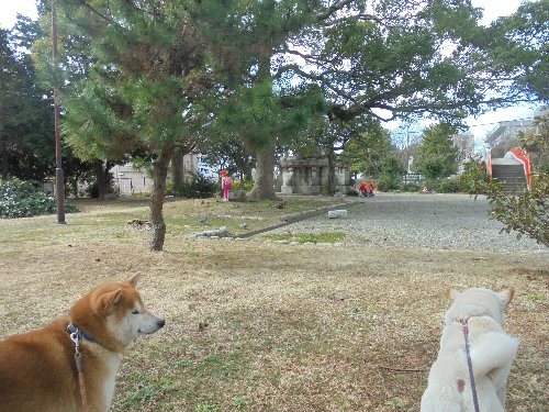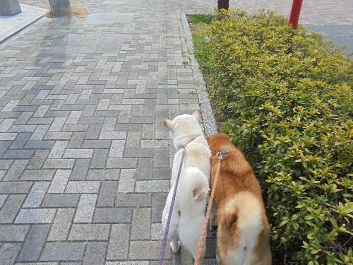 なんとなく、今の2匹の勢いが分かる、散歩のひとこまです。