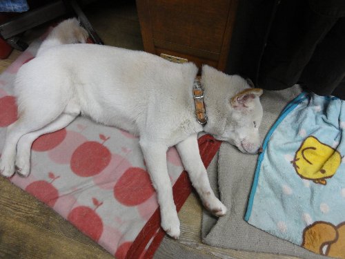 シロ君、寝ている間に観察したら、やっぱり,口の上の方が