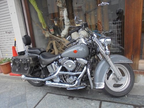 ハーレーをお店の前に停めていると、