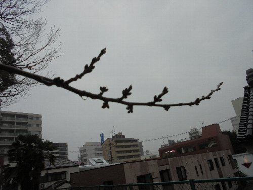 サクラのつぼみも、雨に打たれて、冷たそうです。