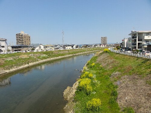 馬込川の川岸に、菜の花がいっぱい咲いていました。
