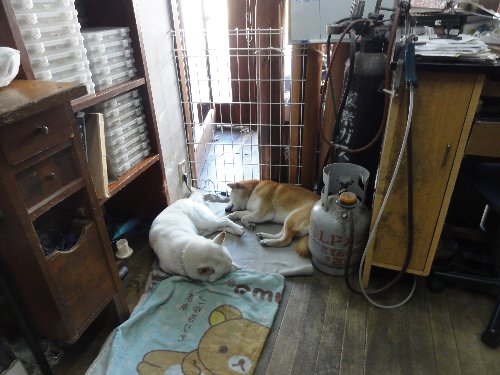 ワンコたちも、2匹まーるくなって寝ています。
