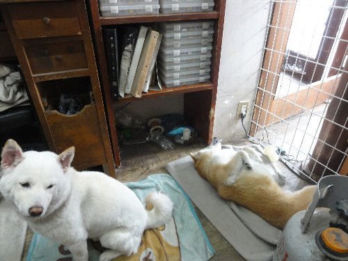 冷ややかに見ている、シロ君です。