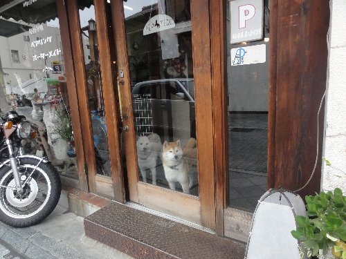シロ君、チャロ君、誰が来たのか、興味しんしん、、、