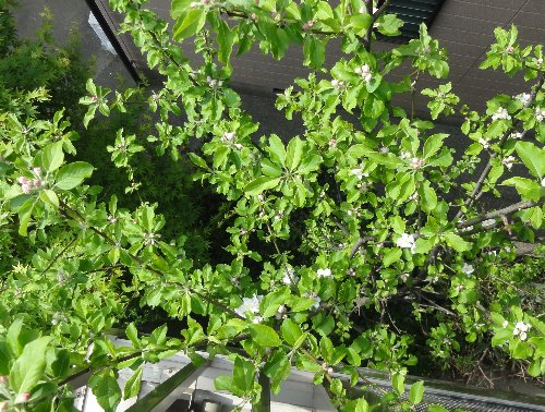 花好きな女房としては、姫リンゴが、2階まですくすく伸びて、