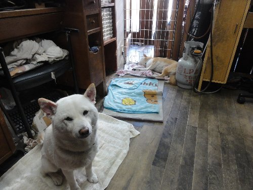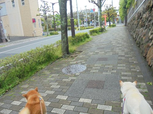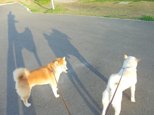ワンコたちも、昨日の濡れたお散歩から一転、おお張り切りです。