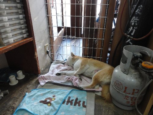 ふっと手を休めて、左を見たら、チャロ君、ぐっすりです。