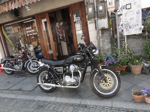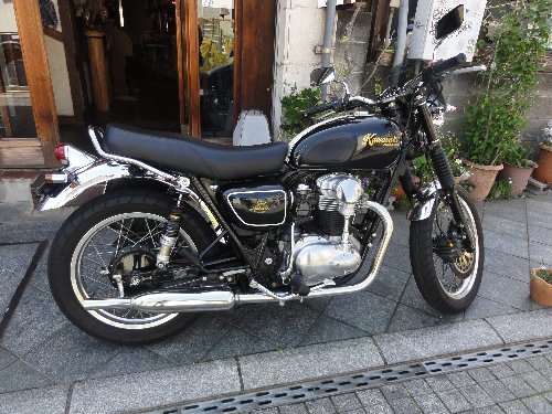 タンクの手書きっぽいゴールドのカワサキモーターも