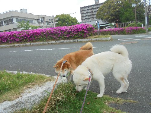 2匹とも、朝の散歩の途中、葉っぱを食べたりするんですが、、、