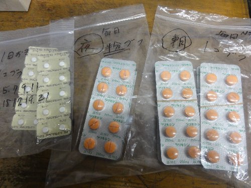 朝あげる薬、夜あげる薬、1日おきにあげる薬をもらいました。