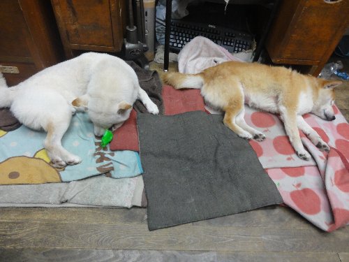 ふっと横を見たら、ワンコたちも、すっかり夢の中のようです。