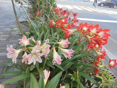 まあ、アマリリスの花が彩やかで、きれいなこと、、、