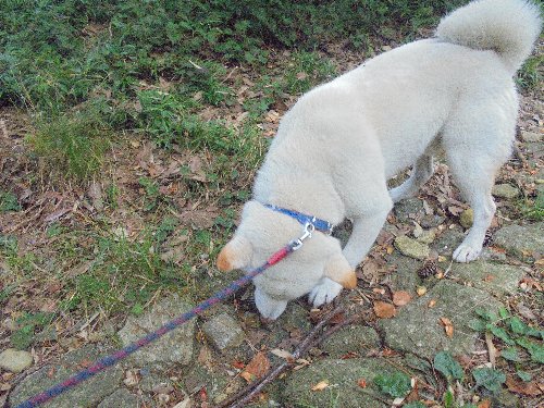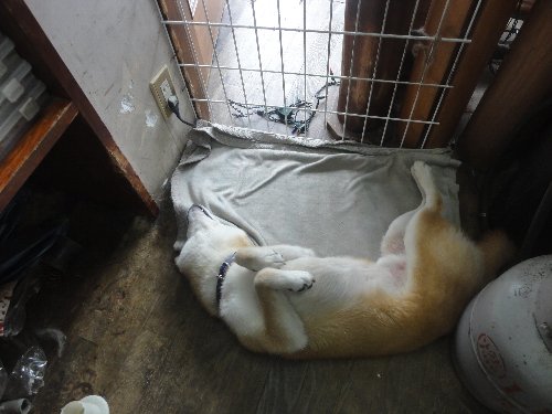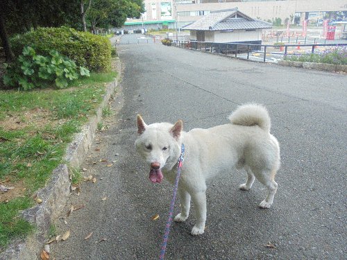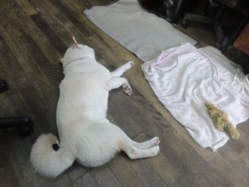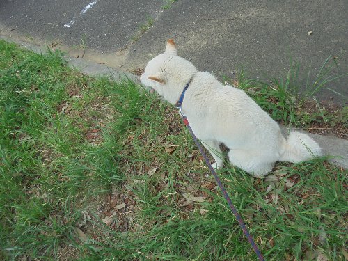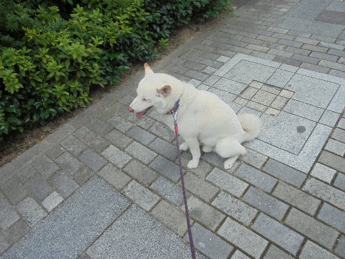 シロ君、何故か、時々座り込んでしまいます。