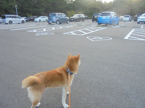 今日もチャロくん、駐車場で、車は何処と、キョロキョロしています。