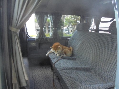 ちゃっかり、車に乗り込んで、足をなめていました。