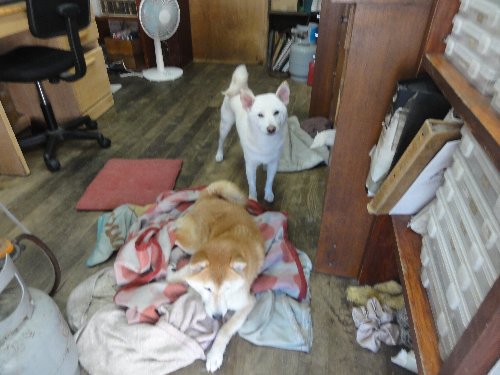 ハハーン、チャロくんは、毛布類を独占して寝てるんだな。