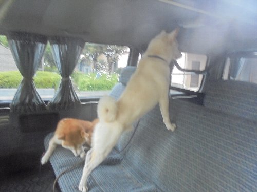 ダッシュで車に戻ってきますが、その後は犬それぞれです。